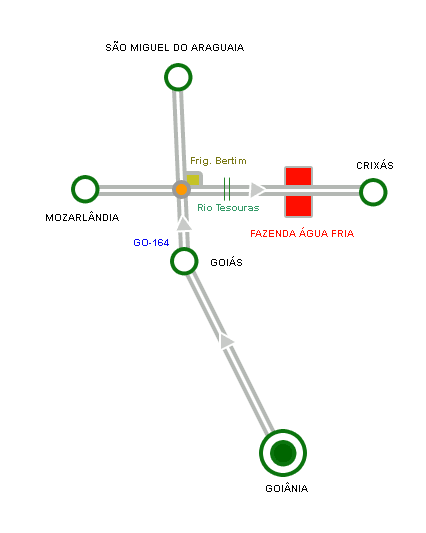 No trevo de Mozarlândia, entrar ao lado do Frigorífico Bertim e após 20km observar as placas indicativas para a Fazenda Água Fria.